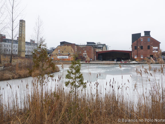 O lugar é certamente diferente de tudo que já vi aqui em Toronto, tem um ar industrial mas ao mesmo tempo integrado com a natureza. A falta de cores e folhas nas árvores não valoriza tanto a paisagem do parque mas imagina isso coberto de neve, verdinho no verão e colorido no outono. Deve ficar um espetáculo. Aliás toda a região ao redor da Don Valley Parkway é muito bonita.