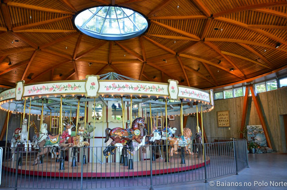 Os animais do carrossel são todos esculpidos em madeira. E por apenas $2 podemos brincar. As meninas amaram, cada uma pediu para ir duas vezes. Engraçado é que haviam até adultos no carrossel. Na hora que chegamos não tinha nenhuma fila mas o atendente disse que durante o dia estava bem movimentado.