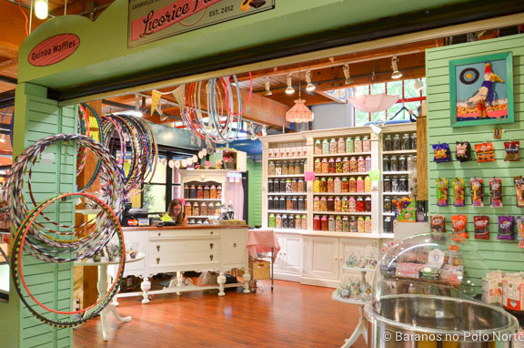Acordamos cedo e fomos tomar café no mercado municipal em Granville Island (granvilleisland.com). Essa é uma antiga área industrial da cidade que foi revitalizada e tornou-se um destino gastronômico, cultural e de compras. Sem dúvida, nós fomos pela comida!