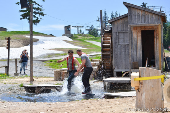 Subimos o teleférico até o topo e ficamos caminhando um pouco pelas trilhas. Depois assistimos o show dos lenhadores, que foi super divertido.