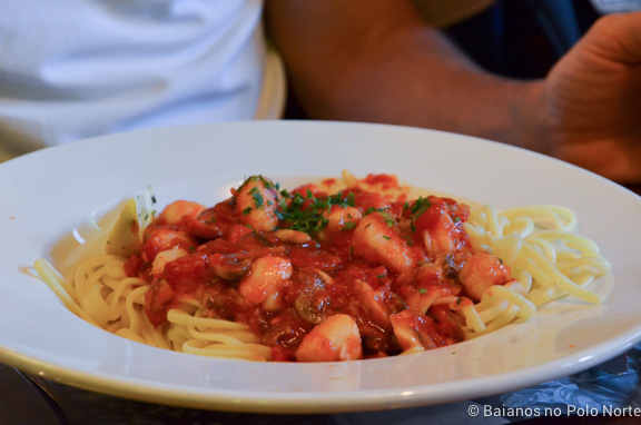 Nessas alturas já estávamos super cansados e entramos no primeiro restaurante que estava sem fila, o Old Spaghetti Factory. Esse não é o tipo de lugar para quem busca pratos elaborados e diferentes. É uma opção mais trivial, com comida farta e em conta. As crianças curtem a comida e a decoração ecêntrica deles. Aqui em Toronto tem um em downtown. O de Vancouver está localizado no 55 Water Street.