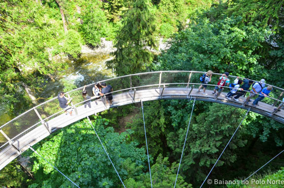 O parque do Capilano é uma atração super turística mas que não dá para deixar de fazer em Vancouver. Mas a dica para evitar a multidão é chegar lá no horário que eles abrem ou então no fim do dia. Afinal eles ficam abertos até às 20h no verão e dá para fazer tudo com calma em 2-3 horas no máximo. Consulte os horários e endereço no site capbridge.com. O nosso camping estava praticamente do lado e facilitou muito a nossa vida.