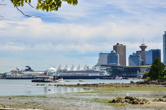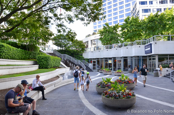 O Canada Place (www.canadaplace.ca) é o prédio que se assemelha a um navio e é icônico na paisagem de Vancouver. É uma área multi uso, onde acontecem eventos e atividades para o público. É de lá que partem os navios que fazem cruzeiros para o Alaska.