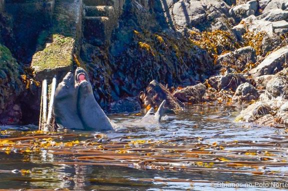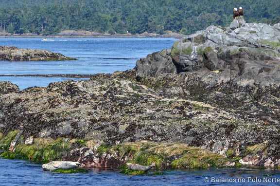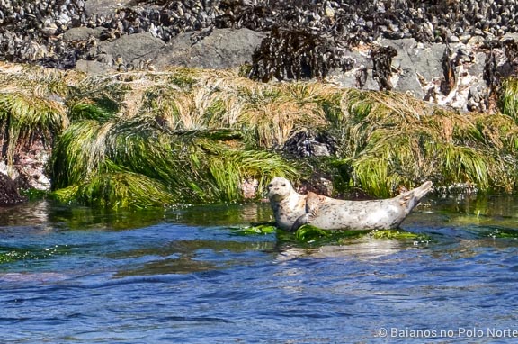 A primeira parada do tour é na reserva ecológica Race Rocks. Nesse local há uma grande concentração de animais, especialmente focas, que ficam deitadas mas pedras. O cenário, com as montanhas ao fundo, não podia ser mais bonito. Nós vimos também um casal de águias, elefantes marinhos e uma lontra chamada Ollie. Essa lontra é a única que vive na região e virou uma espécie de mascote para os barcos. Pense num bicho fofo.