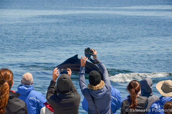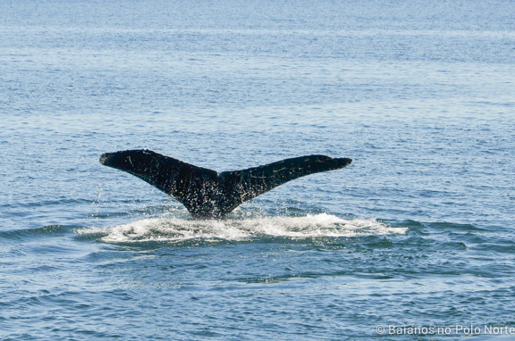 Passeios para observação de baleias são imprevisíveis e é preciso ter uma certa sorte para vê-las ativas, saltando para fora da água. Nós não tivemos essa sorte e isso me frustrou um pouco. Elas giravam na água, colocavam o rabo para cima, mas pular para fora mesmo, não fizeram. Não sei se o horário influencia alguma coisa, nós fomos no segundo barco do dia.