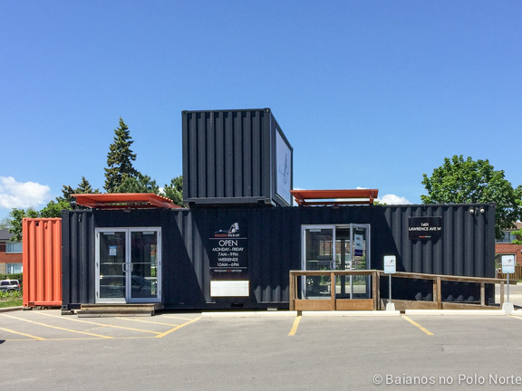 A Amazon oferece a opção de retirar a compra em uma loja física, conveniada. Não há nenhum custo adicional para usar esse serviço e geralmente esses lugares para retirada são filiais do correio canadense. Na hora da compra basta escolher um desses locais na opção de envio. Recebemos um email avisando que a mercadoria já chegou e temos um prazo de alguns dias para retirar. A caixa não pode ser maior que 2 metros de comprimento e 30Kg.