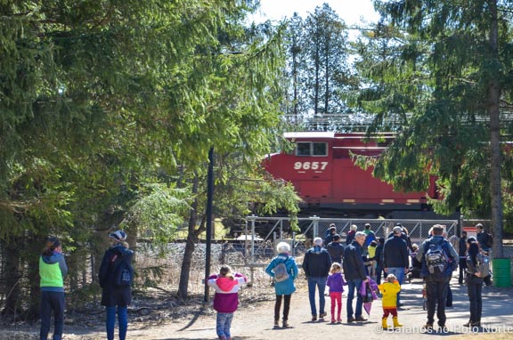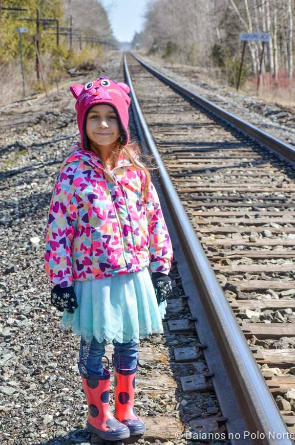 A linha férrea é isolada por uma cerca e 2 portões, pois ainda está ativa. Inclusive o trem passou logo depois que atravessamos. Mas não se preocupe em ser pego de surpresa porque ele vem apitando e faz o maior barulho antes de chegar. A criançada pirou quando viu o trem, bônus!