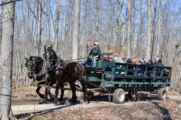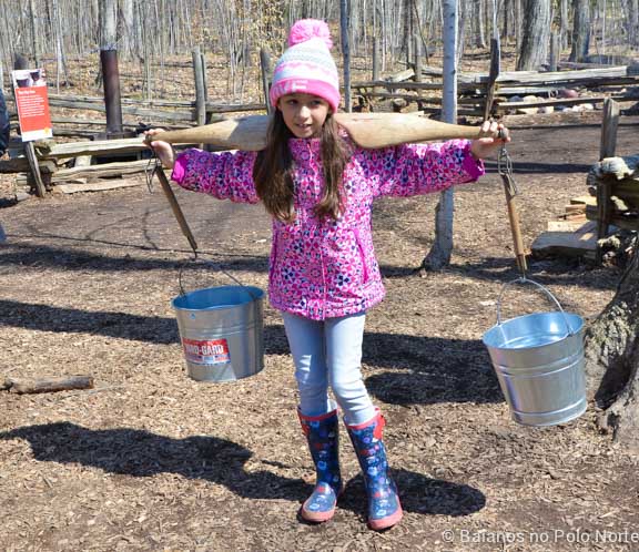 Durante o início da primavera acontece o Maple Town, que é um festival de maple syrup, ele foi o motivo principal da nossa visita. Assim como outros que já fomos, eles mostram os processos de extração e fabricação da calda doce que os canadenses tanto amam. Ir nesses festivais tornou-se uma tradição aqui em casa e esse ano só conseguimos ir no último dia por que o tempo não estava ajudando muito.
