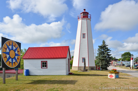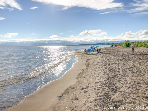 Quem disse que um passeio planejado de última hora não é bom? Fiquei procurando, sem muita sorte, um lugar para acampar a semana toda, mas na sexta-feira olhei e tinha uma vaga no Port Burwell Provincial Park. Reservei sem saber nada sobre o local e seguimos em direção sul. O parque fica ao lado da cidade de mesmo nome, nas margens do Lago Erie. A região é completamente fora da rota turística e ideal para quem busca praia de lago tranquila e de água não congelante.