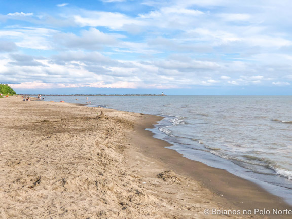 De todos os Grande Lagos, o Erie é o que tem a água mais gostosa para banho no verão. Veja bem, não estou dizendo que a água é quente, mas também não congela a alma quando a gente entra. É bem agradável! Por esse motivo as praias do Erie são bem procuradas e ficam lotadas. Mas a muvuca, como a gente vê em Crystal Beach ou Port Dover, ainda não chegou em Port Burwell.