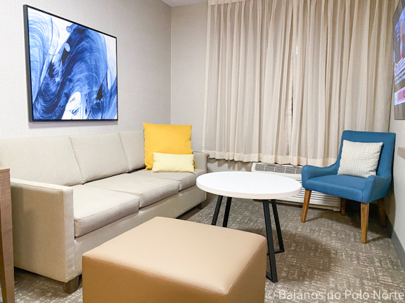 O hotel tem suites com 1, 2 quartos e studio. A nossa tinha 1 quarto com duas camas queen e sala com sofá cama. O tamanho do quarto é bem confortável e a cama também!