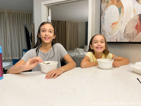 Acabei não tirando fotos da comida em si mas eram aqueles itens comuns em cafés da manhã norte americanos e estavam bem gostosinhos.Mãe expatriada