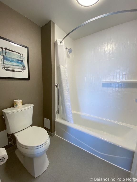 Dentro do quarto estava tudo impecável e ainda tinha uns pacotinhos de Lysol (lenços com desinfetante). Mesmo estando tudo limpo, passei o Lysol em todas as superfícies para garantir. Temos que nos acostumar com essa nova realidade e reconhecer que lysol no quarto é luxo…