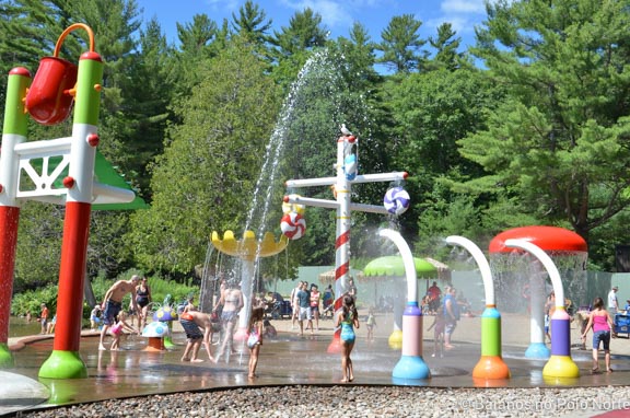 Depois do almoço passeamos de trem pela floresta e seguimos para o parque aquático. Eles tem um splash pad bem grande e uma praia de lago com algumas cadeiras na areia.