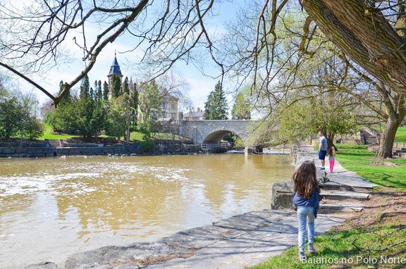 Iniciamos nosso tour na York St com a Huron St, onde estacionamos o carro ($1 por hora). Logo ali do lado há uns pedalinhos para alugar mas seguimos andando, beirando o rio Avon, até o outro lado. Sim o nome do rio também é o mesmo da cidade inglesa.