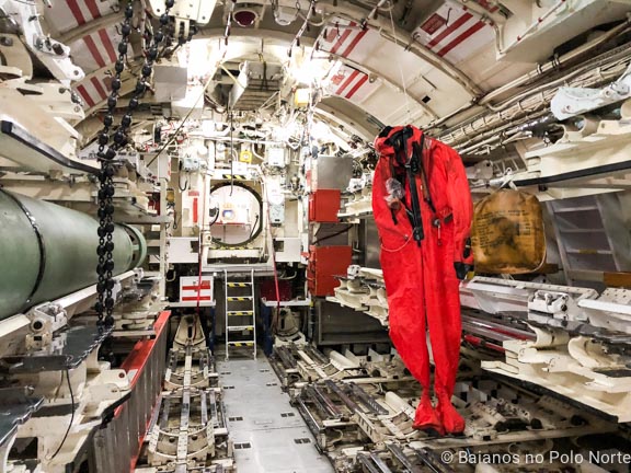 O tour começa na parte da frente do submarino, na sala de torpedos. Essa é a única área interna que eles permitem fotografar então se você quiser ver o resto, terá que fazer o tour.