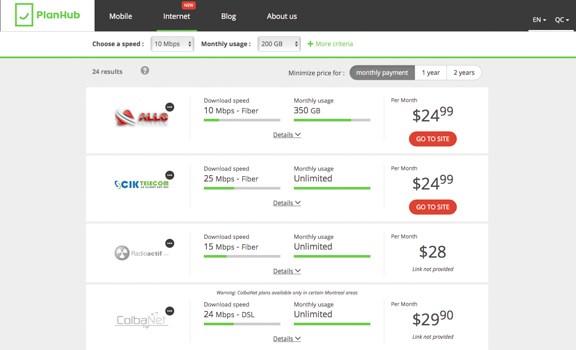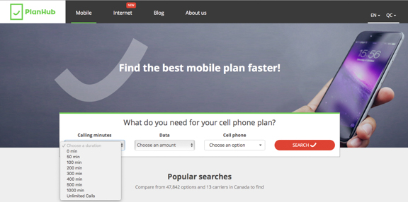 Eu já escrevi um post falando sobre as principais operadoras de celular no Canadá e, por causa disso, as pessoas sempre me perguntam qual a empresa oferece os melhores pacotes. A resposta para essa pergunta é super difícil pois são tantas operadoras e preços mudando constantemente que fica complicado comparar manualmente. Decidi então pesquisar se havia uma maneira mais prática de fazer isso e acabei descobrindo o site de uma empresa de Montreal chamada PlanHub.