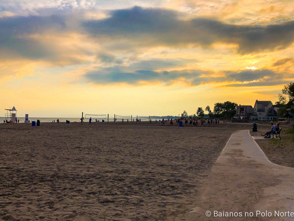 Aliás essa praia tem uma coisa que nunca vi antes por aqui, um restaurante descontraído que funciona como uma espécie de barraca de praia (GT’s on the Beach). O pátio fica praticamente na areia e a gente pode comer assistindo o pessoal jogando vôlei. O mais próximo disso que já vi foi em Port Dover, mas lá o pátio é na varanda, num nível mais alto do que a praia e é um ambiente diferente. Em Port Stanley só faltou o caranguejo para eu me sentir completamente numa barraca de praia do nordeste. Sabe o Emoji com os corações nos olhos? Era eu nesse dia. 😍