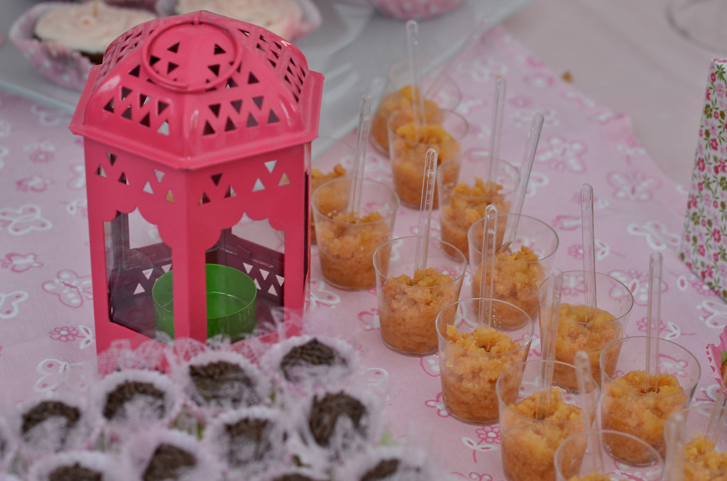 Fiz os doces, o bolo e encomendei alguns salgados (coxinha, empada e quibe). Fiquei muito orgulhosa de mim mesma quando vi tudo pronto, só fiquei chateada porque que as fotos não saíram tão boas assim. Quando arrumei a mesa estava nublado e não consegui ver onde estava o sol, depois que estava tudo no lugar o sol saiu e ficou desse jeito aí. Os convidados já estavam chegando e não deu mais tempo de mudar. Devia ter pego um lençol ou toalha para barrar o sol nas fotos mas na hora são tantas coisas para se preocupar que não deu. Na próxima já sei 🙁