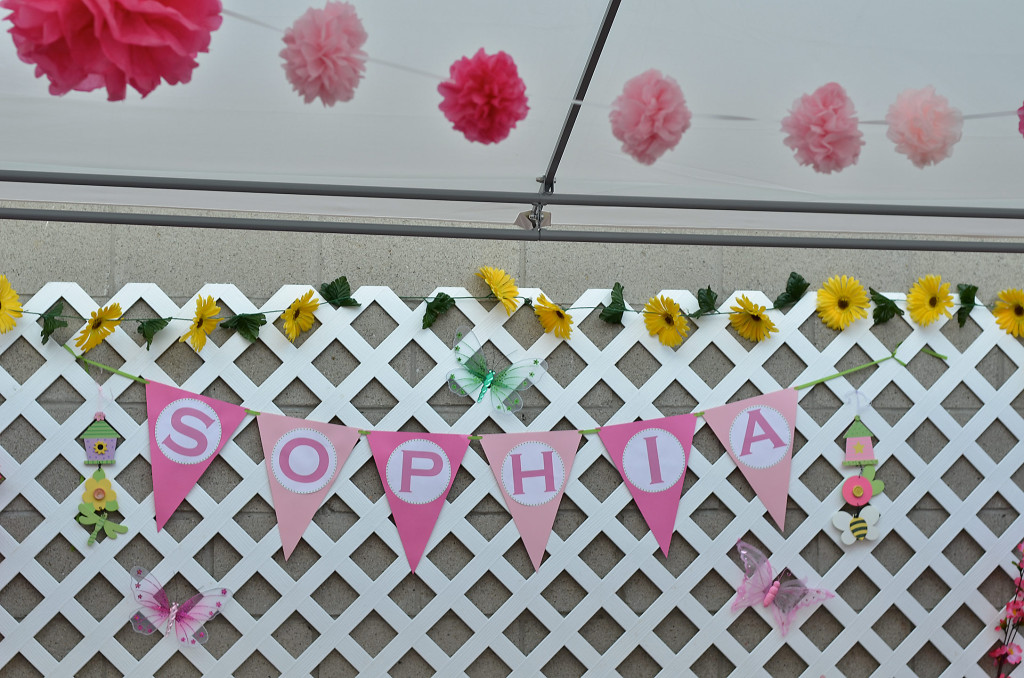 O aniversário de Sophia foi no início de Junho mas fizemos a festinha no dia 23, já que a minha mãe só podia vir nessa data. Comecei a planejar a festa em abril, o tema foi jardim. Tinha tantas idéias que dava para fazer duas festas! Olha meu Pinterest como ficou.