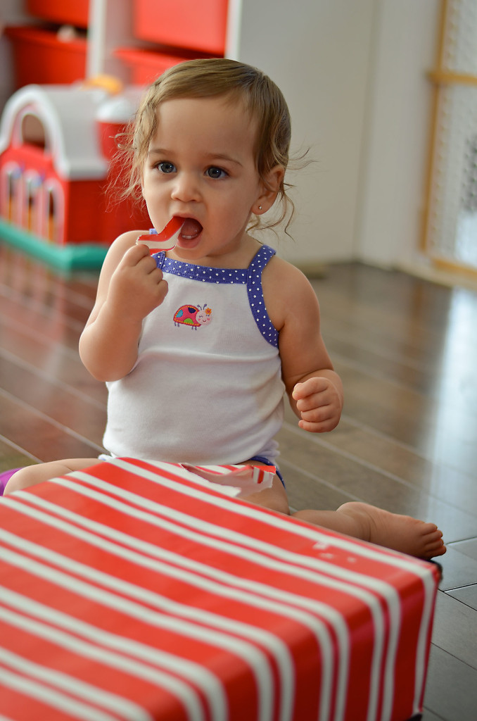 No fim da festa ela abriu os presentes e gostou de tudo, principalmente das embalagens!