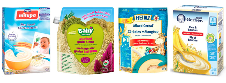 No quesito cereais, tem sabores para bebês em fase inicial de introdução de sólidos e outros misturados com frutas e com textura mais grossa para os que já estão num estágio mais avançado. Os estágios vão do 1 ao 4, é só olhar nas embalagens a indicação de idade. As principais marcas são Heinz, Milupa, Nestlé Gerber e Baby Gourmet. Mas prestem atenção pois há opções que já vem com leite e é preciso adicionar só água e outras que você adiciona o leite de sua preferência.