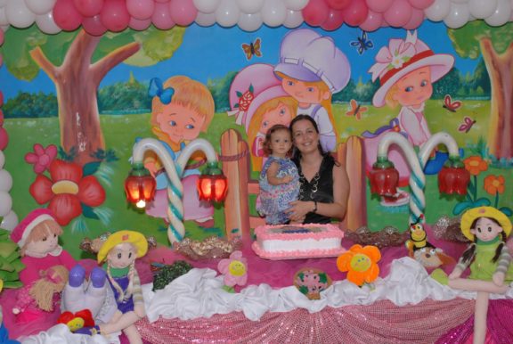 Nos anos seguintes as festas diminuíram consideravelmente de tamanho. Eu mesma organizo tudo, monto uma decoração simples, compro bolo, docinhos, salgadinhos, pizza e pronto. Agora as meninas estão com 8 e 10 anos e a cada aniversário, a festa vai ficando menor.