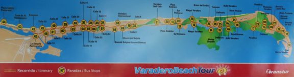 Há um ônibus hop on/hop off, de dois andares, que para em 48 pontos, incluindo todos os hotéis. Por apenas 5CUC por pessoa podemos passear o dia inteiro! Minhas filhas tem 7 e 10 anos e pagaram a mesma coisa. Guarde o ticket e mostre toda vez que reembarcar. O horário de funcionamento é de 9:30am – 9:00pm, e ele passa a cada meia hora.