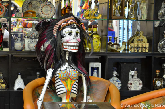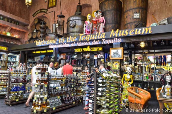 Caminhamos um pouco, entramos na loja Hacienda Tequila pra olhar. Nos ofereceram uma degustação, ouvimos explicações sobre o processo de fabricação da Tequila e trouxemos uma garrafa pra casa. Assim como a nossa cachaça, há vários tipos de Tequila e eles vão ainda mais além com regulamentações do governo sobre a produção.