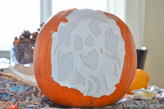 - Molde com o desenho que vai colocar na abóbora (opcional)