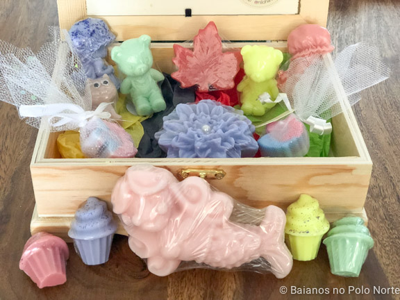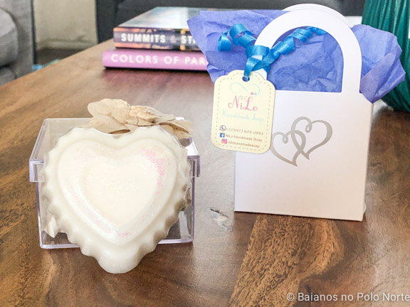 Ela faz sabonetes personalizados e super cheirosos, com temas variados. A empresa foi fundada aqui em Ontário e seus produtos são registrados no Health Canada, o que garante a segurança e padronização dos ingredientes.
