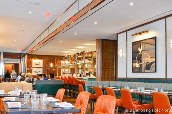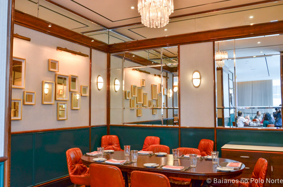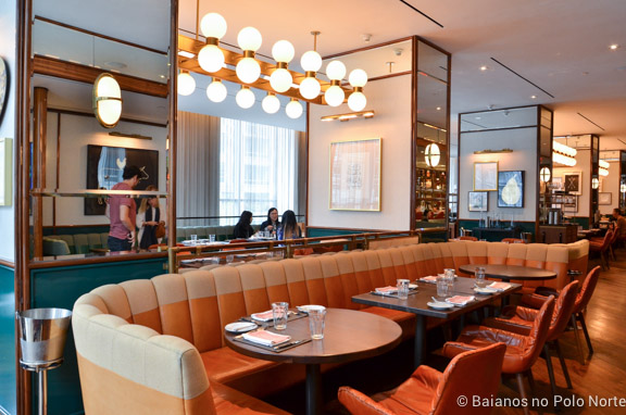 Logo de cara eu já gostei da decoração com um toque retrô, criada pelo designer inglês Martin Brudnizki. Turquesa é a minha cor favorita e é usada elegantemente no ambiente. O Café Boulud tem 3 áreas: o bar, a sala de jantar e uma pequeno ambiente onde podemos ficar com mais privacidade. É ideal para um pequeno grupo de amigos ou uma ocasião especial.