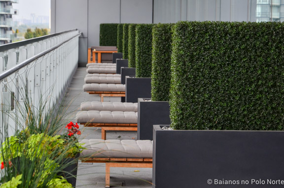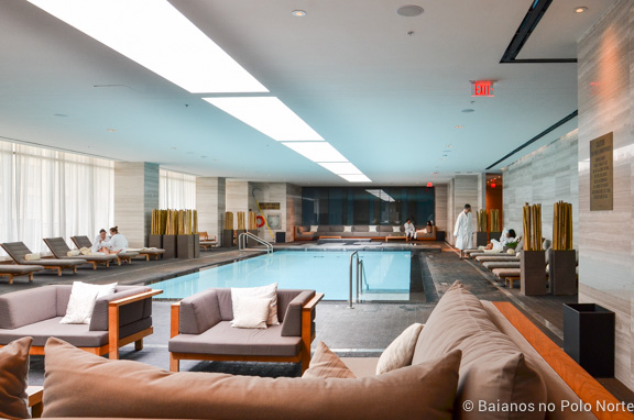Conhecemos o spa, que é um dos maiores de Toronto com mais de 2700 metros quadrados (já doida para testar). Ele está localizado no 9º andar e conta com 17 salas, 2 saunas e um salão de beleza. Do lado do spa está a piscina coberta e um terraço com uma vista para Yorkville, ambos abertos para hóspedes, residentes ou clientes do spa.