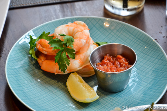 O Crevettes Sauvage ($22), que vem com 5 camarões gigantes e molho bem gostoso.