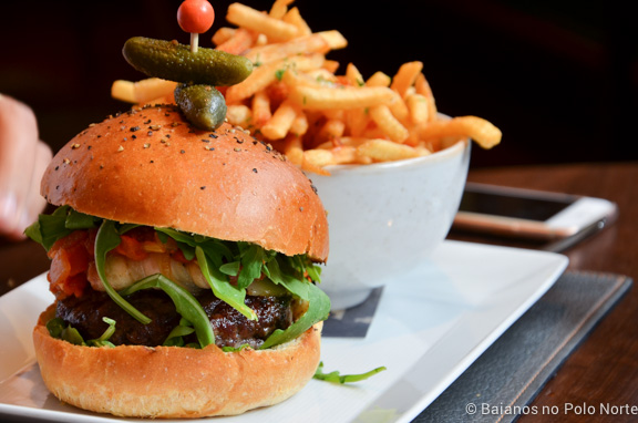 A Gaby de Frenchie Burger ($25), um hambúguer enorme com uma porção de batatas fritas.