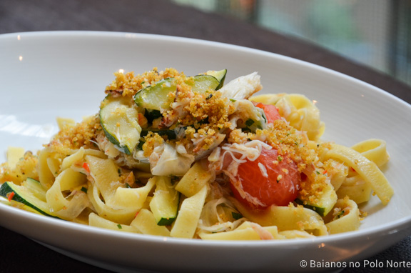 Para o almoço a Mirella foi de Fettuccini com carangueijo ($23). Eles tem a opção de meia porção e foi essa que ela pediu. Achamos que a quantidade foi suficiente, o prato maior era muito grandão.