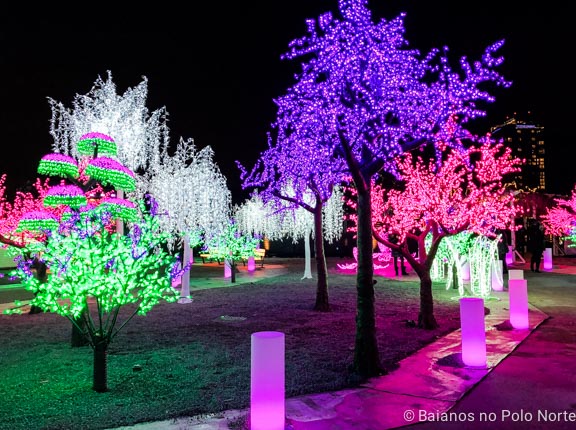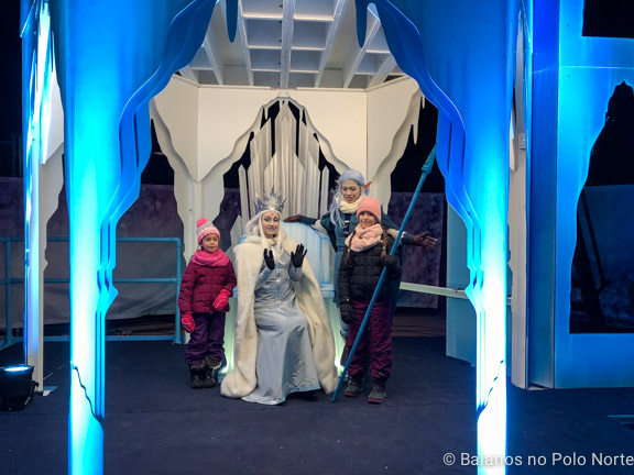 Essa é sem dúvida a parte mais impressionante do Aurora, as fotos e vídeo da nossa jornada encantada falam por si. Entramos pelo Luminous Gardens, onde está Thyra, a Rainha do Gelo, e Rivera, a elfa. Apesar de poder entrar pelo outro lado, essa é a entrada oficial. Ou seja, é a que proporciona o maior impacto visual.