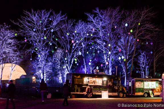 – Na beira do lago venta bastante, então é muito importante se vestir adequadamente. No dia da nossa visita estava apenas -4C mas sentimos muito frio por causa do vento. Dentro do festival há várias áreas com aquecimento para podermos escapar do frio por alguns minutos, como a área de entretenimento ao lado da pista de patinação ou a tenda do Papai Noel.