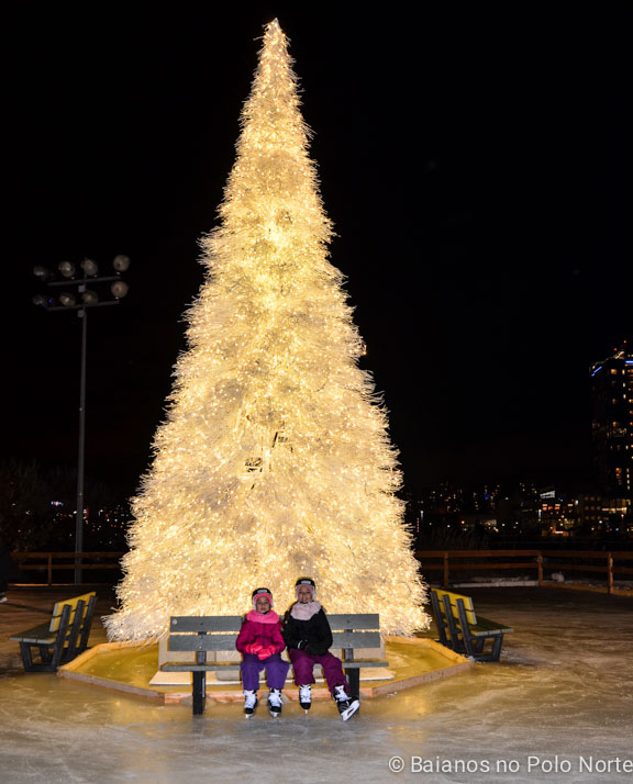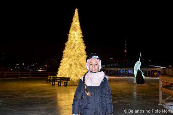 A pista de patinação é super linda (já estou ficando sem adjetivos), com árvore de Natal no meio e uma vista incrível do centro de Toronto.