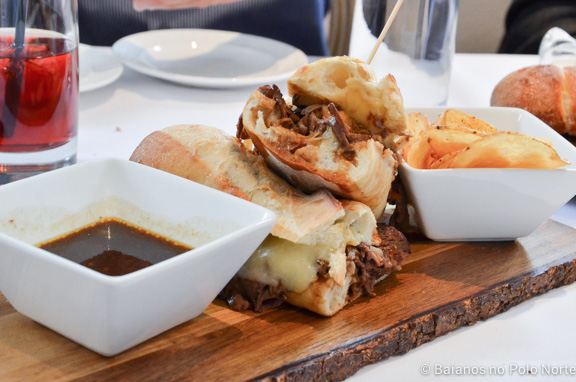 No almoço eles servem refeições mais leves, como sanduíches e saladas. O sanduíche é enorme! Foi mais do que suficiente para eu e o meu marido, já que tomamos a sopa antes. Pedimos o Beef Dip, que estava delicioso.