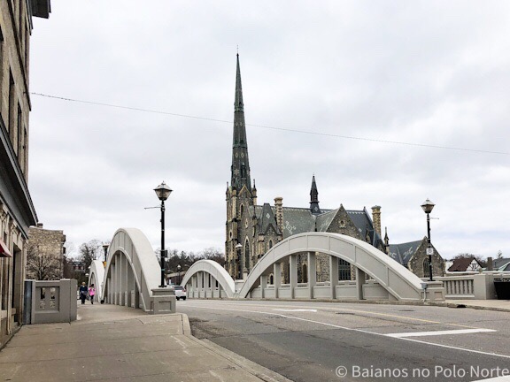 A cidade de Cambridge aparece diversas vezes no seriado. Dá para reconhecer a ponte na Main St, o Mill Race Park e até a igreja. Toda vez que as Handmaids andam na beira do rio, é Cambridge. Vale mencionar que essa cidade é super bonitinha e vale o passeio.