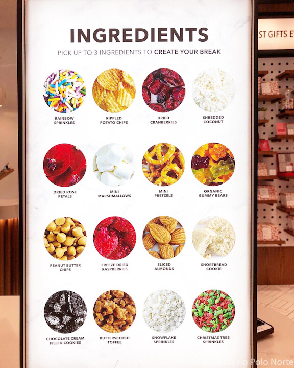 • Whoa, White Cranberry – chocolate branco com cranberries, pistachios e sprinkles com formato de flocos de neve.