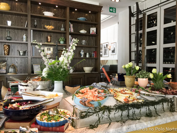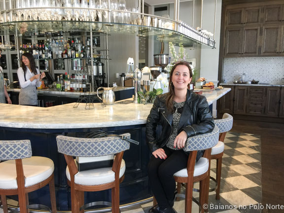 Logo na entrada do restaurante há um bar super convidativo com uma adega que toma toda a parede do fundo e um pequeno lounge com sofás, que me lembrou uma biblioteca.
