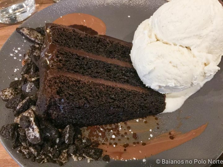 A maioria das sobremesas vem combinadas com sorvete, que é feito por eles artesanalmente. São apenas 10 sabores para escolher, entre eles chocolate, morango, coco, manga e dulce & banana (com doce de leite, Nutella e banana), porém todos são super cremosos. E as porções são gigantes, raramente consigo comer tudo sozinha. Olha aí algumas coisas que comemos da última vez.