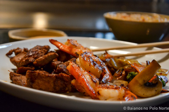 Logo que chegamos fiquei preocupada com a fumaça da comida na minha cara. Já fui numa churrascaria coreana e quase morri no dia seguinte de tanta alergia por respirar a fumaça. No Hibachi o exaustor é lateral e bem forte, puxou tudo. Aprovado pela alérgica de plantão!