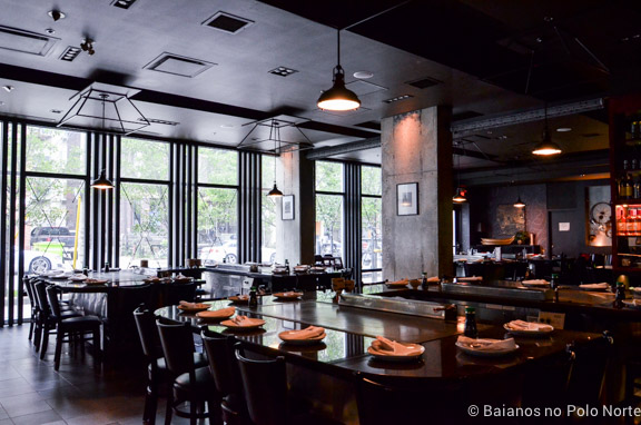 E finalmente a sala de jantar principal, que é super ampla, aconchegante e com as mesas agrupadas ao redor das chapas onde eles preparam a comida. Me senti como se é tivesse sentada na ilha da cozinha de alguém, batendo papo enquanto esperava a comida ser servida.