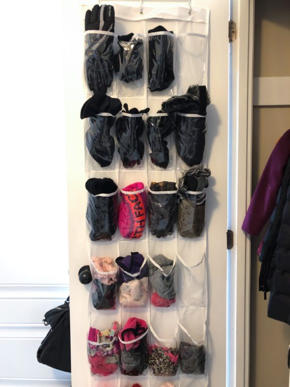 – Sapateira para organizar luvas, gorros e cachecóis. Aqui em casa tem um pequeno armário na entrada onde guardamos casacos, sapatos e acessórios de inverno. Eu penduro uma sapateira na porta desse armário para organizar a bagunça e facilitar na hora de sair. Comprei essa aqui e é bem resistente. Tem outras opções na Amazon, mais caras e mais baratas. Já vi na Dollarama mas achei ela meio fraquinha para aguentar o puxa e estica diário.