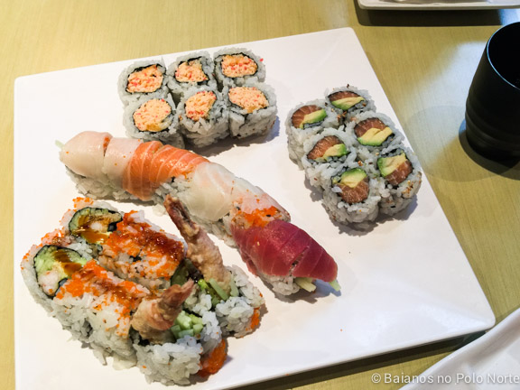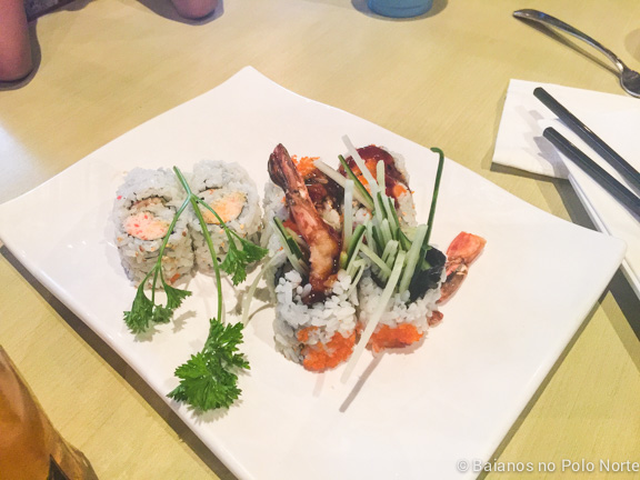 Eles tem uma enorme variedade de sushi e pratos da culinária japonesa. Recentemente incluíram comida chinesa também, mas são poucos pratos. Tudo que provei até hoje era bem gostoso. Meu sushis favoritos são o Spicy Crab e Dynamite Roll.