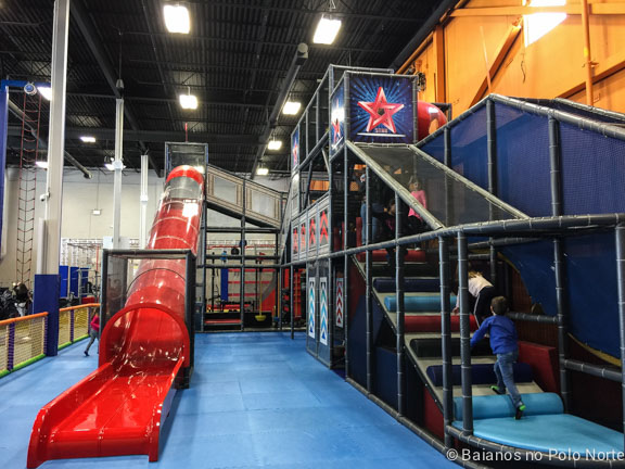 Alguém aí já ouviu falar, ou assistiu, um programa de TV americano chamado American Ninja Warrior onde as pessoas tem que fazer um circuito de obstáculos super radical e quem for mais rápido leva 50 mil dólares? No fim de semana passado me senti dentro desse programa ao visitar o Ninjaz, um parque novo na cidade de Vaughan, pertinho de Toronto.