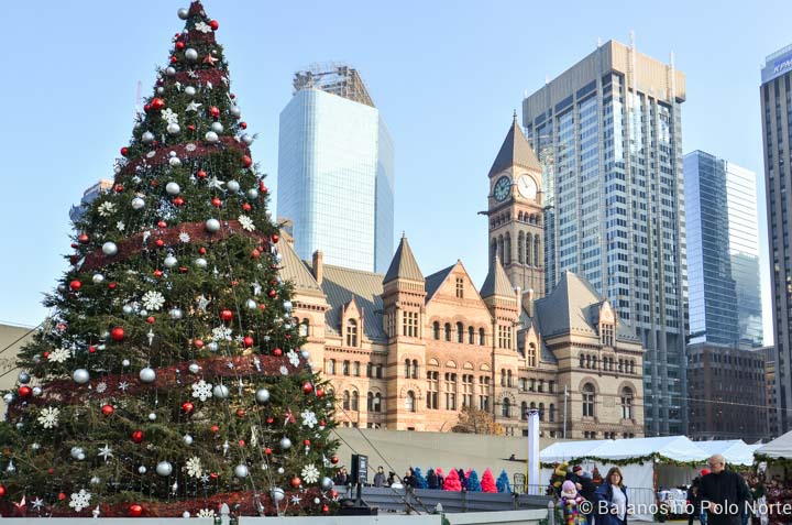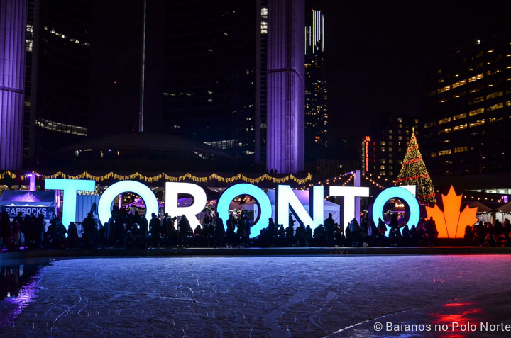 Não é preciso muito para ver o Natal pelas ruas de Toronto, basta caminhar pelos principais pontos turísticos, de dia ou de noite, para ver a cidade com um ar festivo.